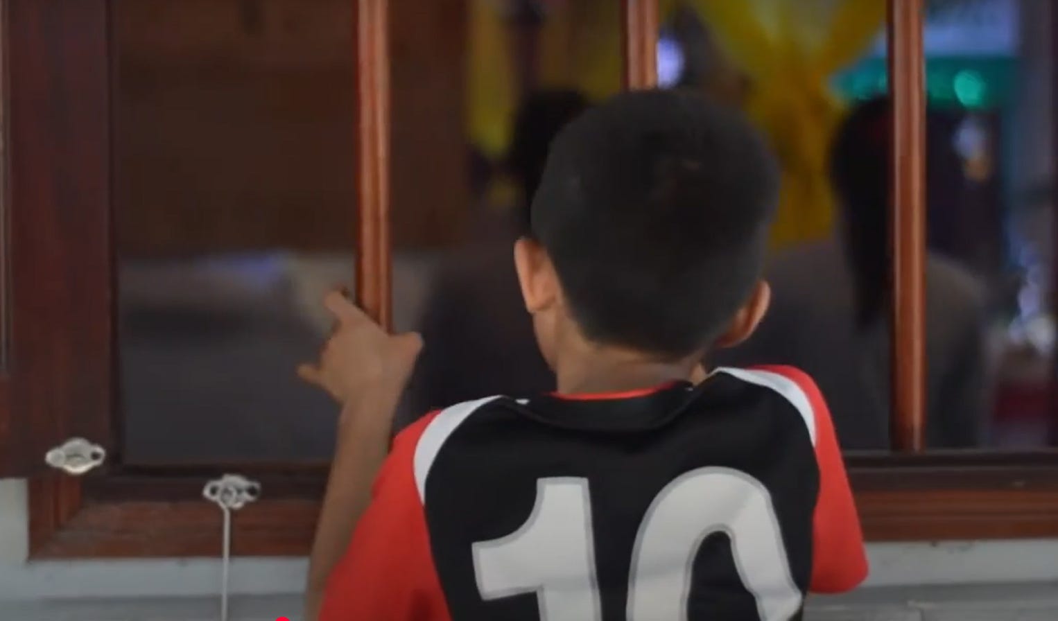 A kid in a football shirt was staring in through the side window of the temple, fascinated by the musicians warming up inside and the glistening robes of the priests. It was a beautiful cameo; I filmed him watching them for a minute…. I was standing directly behind him, but within a few seconds he became aware of me, though he didn’t know where I was. He didn’t hear me, that’s for sure: the soi was noisy, and anyway a sound would have located me. As it was, he turned his head first to the right, then to the left, and only then turned round and saw me. He didn’t know what he was looking for; he had felt my gaze, through the eye of the camera, on the back of his head.
