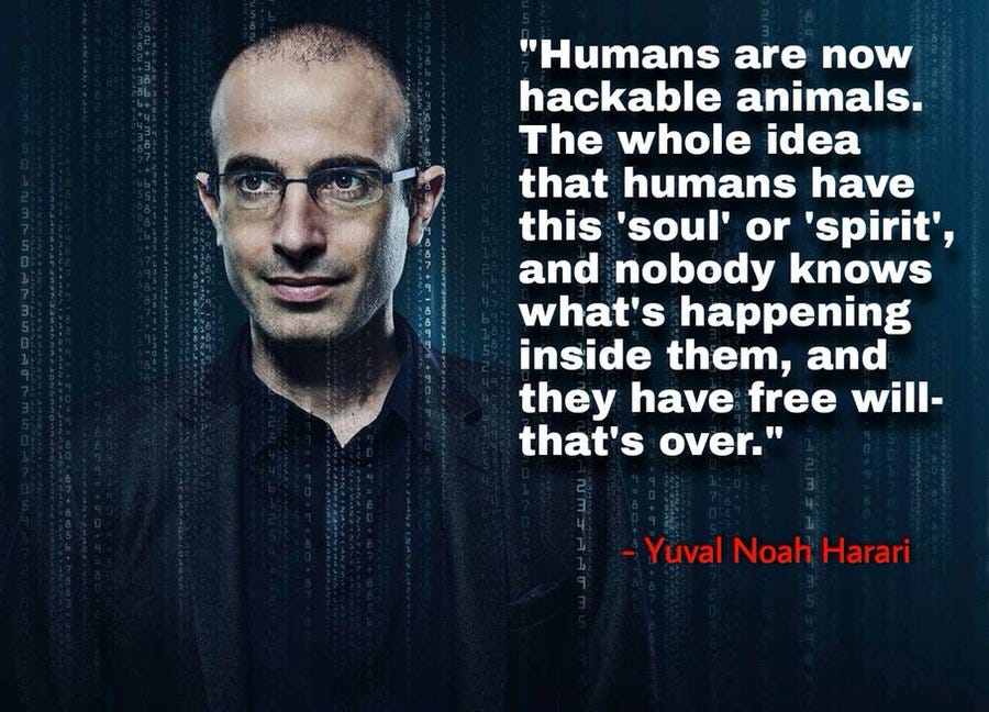 Humans are now hackable animals. The whole idea that humans have this ‘soul’ or ‘spirit’, and nobody knows what’s happening inside them, and they have free will — that’s over.